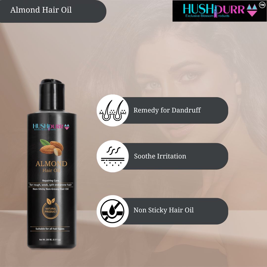 Almond oil increases moisture and helps soothe irritation or dandruff on your scalp. It is filled with the goodness of minerals, including calcium, magnesium, and zinc, which are present in large quantities. These ingredients promote healthy hair development and lessen broken ends and hair loss.