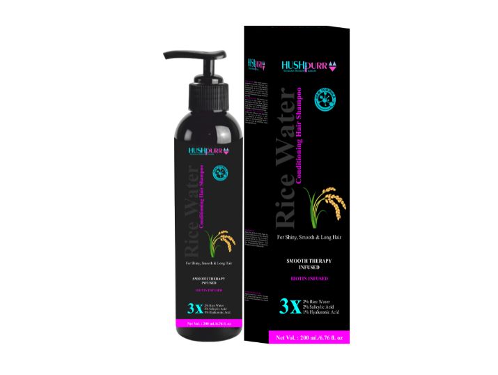 Unlock the secret to shiny, smooth, and long hair with the Rice Water Shampoo from Hushpurr. This innovative formula is infused with 3x the power of rice water, salicylic acid, and hyaluronic acid, working together to nourish and revitalise your tresses. The biotin-enriched smooth therapy blend helps strengthen hair from within, leaving it silky and lustrous. Bid farewell to dull, lifeless locks and embrace a mane that radiates health and vitality. With its gentle yet effective cleansing action, this shampoo is suitable for all hair types. Indulge in the luxury of salon-worthy hair with every wash. Net Volume: 200 ml/6.76 fl. oz.